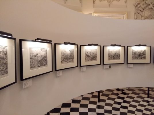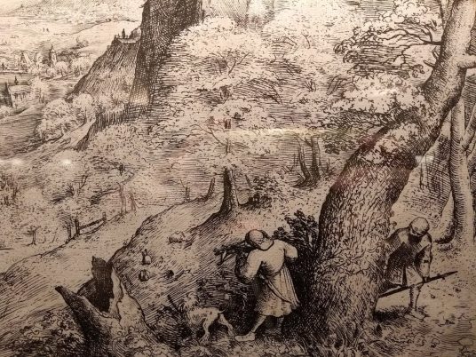 Bij de meeste prenten in de tentoonstelling staat op het begeleidende tekstbordje overigens ook de naam van een ander, zoals Pieter van der Heyden (bijvoorbeeld in het geval van Het Laatste Oordeel), met daarachter de toevoeging “naar Pieter I Bruegel”. Dat betekent niet dat het werk een kopie is van een tekening van Bruegel, maar dat de kunstenaar de ets niet zelf heeft gemaakt. Dat deden meestal professionele graveurs, die zulk goed werk verrichtten dat ze een naamsvermelding kregen.