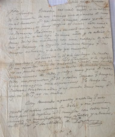 De brief was gericht aan zijn toenmalige vriendin, Leocadia Zorilla (1788-1856). Vanaf 1824 had Goya zich met Leocadia en haar twee jongste kinderen in Bordeaux gevestigd, officieel om in Frankrijk een gezondheidskuur te ondergaan maar in werkelijkheid om te ontsnappen aan het repressieve regime van Ferdinando VII.