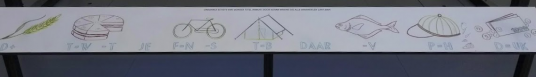 “Wat staat daar? Uk?” Een man in kijkt naar een rebus in het Stadskantoor van Utrecht. “O! Dat is geld!” Hij wijst naar een afbeelding van bankbiljetten en munten. En de D is UK, dus het is geluk! Ja ja.” Met een beetje hulp slaagt hij erin het raadsel op te lossen. De neonpuzzel is een klein stukje van een grotere rebus die ooit elders in Utrecht hing.