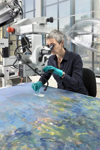 Tijdens onderzoek van het schilderij Blauweregen kreeg restaurator Ruth Hoppe de verrassing van haar leven. Op een röntgenfoto trof ze onder de schildering van Claude Monet waterlelies aan.