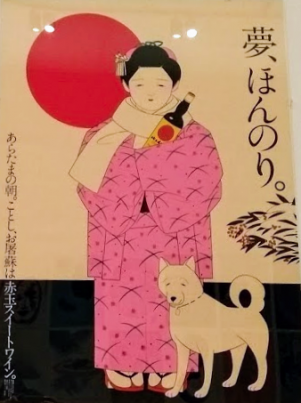Ook andere posters in de affichesalon zijn onmiskenbaar Japans. In sommige zijn bijvoorbeeld manga-invloeden te herkennen of traditionele Japanse elementen. Op één poster is een vrouw in kimono afgebeeld, met een fles drank – hoogstwaarschijnlijk saké. Op de achtergrond prijkt de rode rijzende zon uit de nationale vlag.