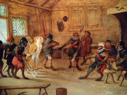 De in Rusland geboren Vozyakov heeft als verzamelaar speciale belangstelling voor het marine-genre en militair-historische schilderkunst. In de tentoonstelling ontbreken de nodige zee- en veldslagen daarom niet. Een van de opvallendste voorstellingen uit die categorieën is een zogeheten singerie van Jan van Kessel de Oude. Dat schilderij toont een groep militairen met drie gevangen. De soldaten zijn apen en hun drie arrestanten lijken sterk op katten.