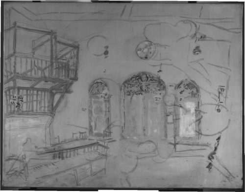 Synagoge te Safad, Israël van Marc Chagall, met ondertekening. c/o Pictoright Amsterdam//Stedelijk Museum Amsterdam. Infrared reflectogram (montage). Foto: René Gerritsen.