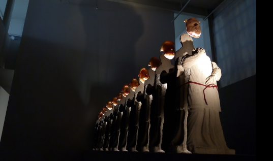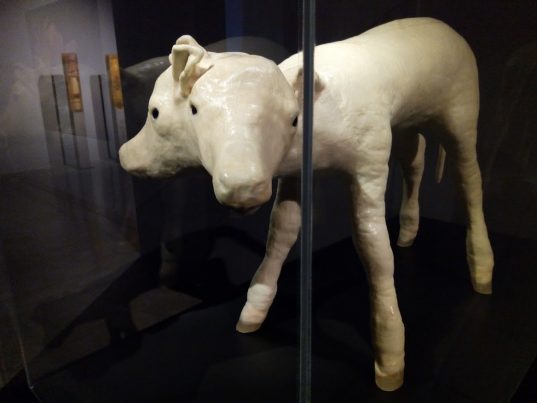 Tijdens mijn bezoek in mei 2018 was ik nog net op tijd voor de tentoonstelling DeTermination van de mulitmediakunstenaar Daniel Pešta (1959). Zijn bevreemdende creaties maakten indruk op me. Ik zag een kalf met twee hoofden, mannen die collectief vlam vatten en installaties met op elkaar gepakte latex maskers, gemodelleerd naar het gezicht van Pešta zelf. Ik was blij dat de zeppelin mij de weg had gewezen en ik hoop ook in Nederland eens werk te zien van de Tsjech.