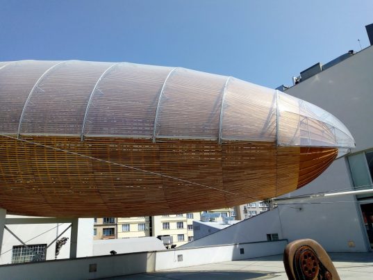 Wat zie ik? Zweeft daar een zeppelin tussen twee gebouwen? Op weg naar mijn hotel in Praag trekt een levensgroot luchtschip mijn aandacht. De blikvanger is het opvallende visitekaartje van Dox, een centrum voor hedendaagse kunst in de Tsjechische hoofdstad. Hij doet zijn werk: hij lokt mij en ook anderen naar binnen.